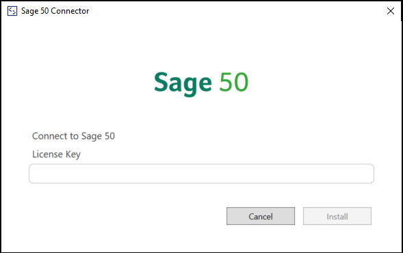 The user should have been provided with a Licence Key when they downloaded the Sage 50 connector. They should enter this in the Licence Key box and then click Install.