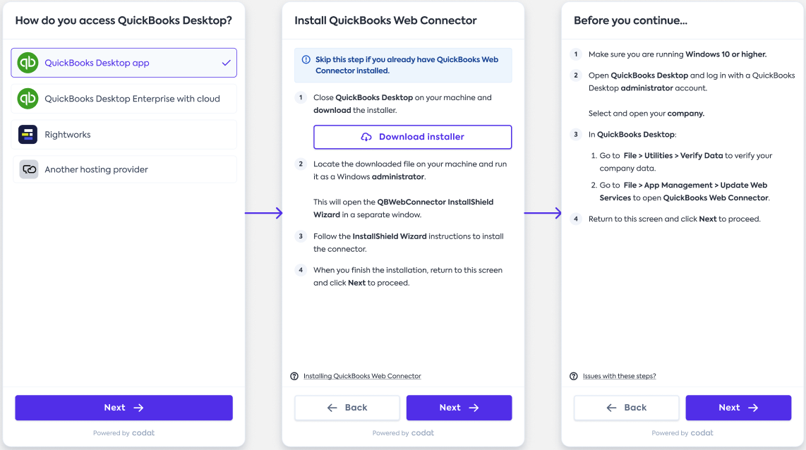QuickBooks Desktop connection flow now benefits from these additional enhancements: